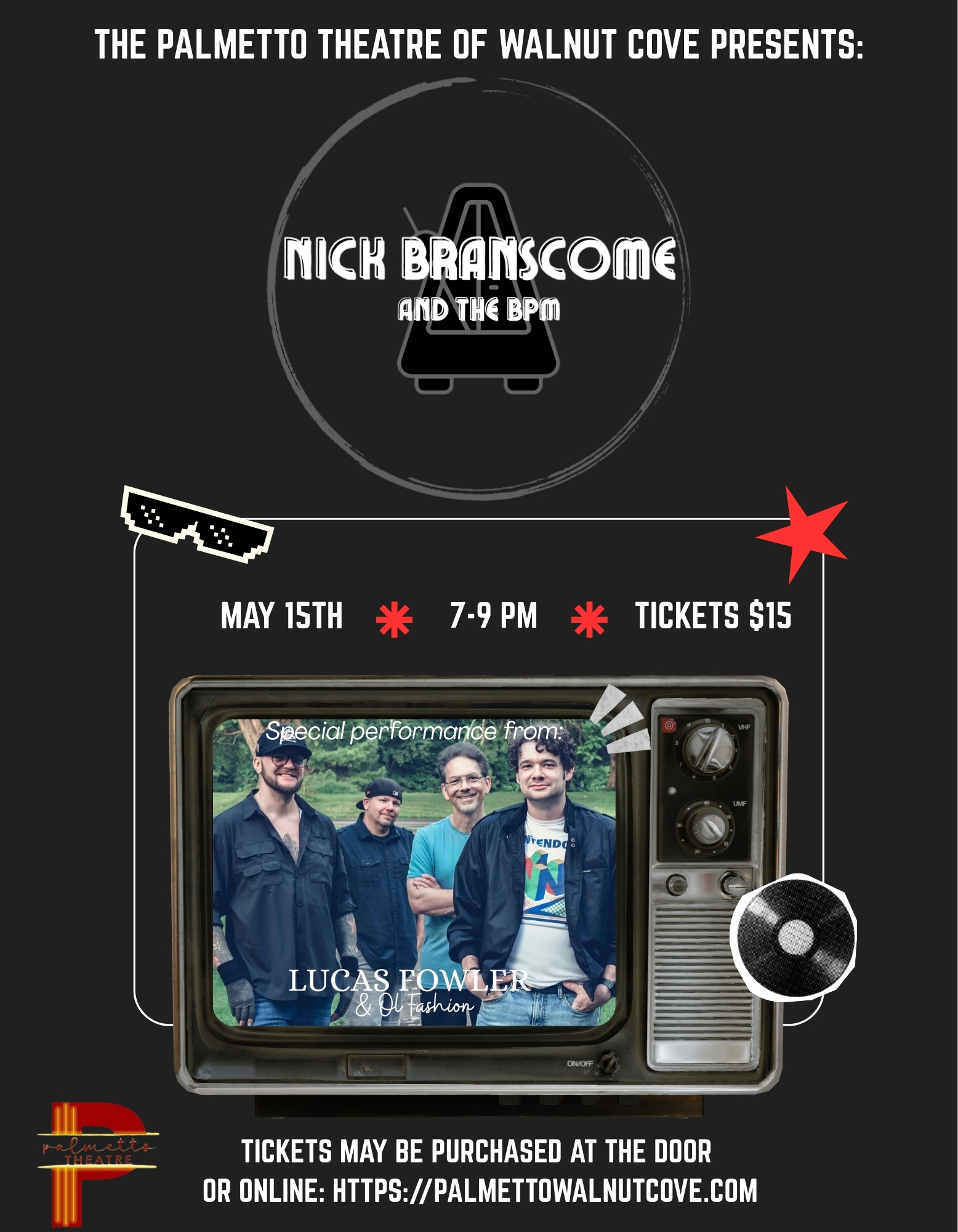 Home / 2026 Concerts / Nick Branscome and the BPM (2026) Nick Branscome and the BPM (2026)$15.00 In stock Nick Branscome and the BPM (2026) quantity Your browser must support JavaScript in order to purchase ticket(s). Ticket #1 First Name: * Last Name: * Email: * Privacy Preference: Opt-out from being displayed in the public list of attendees. Buy Ticket Now SKU: 2026-0515 Category: 2026 Concerts Share this: Print (Opens in new window) Print Email a link to a friend (Opens in new window) Email Description Description Like this:Like Loading... Related products Diamond Jim & The Gemtones (2026) $15.00 Ticket Detail Sock Hop ‘n’ Soul Night with Taylor Vaden $20.00 Ticket Detail An Evening With Taylor Vaden $20.00 Ticket Detail